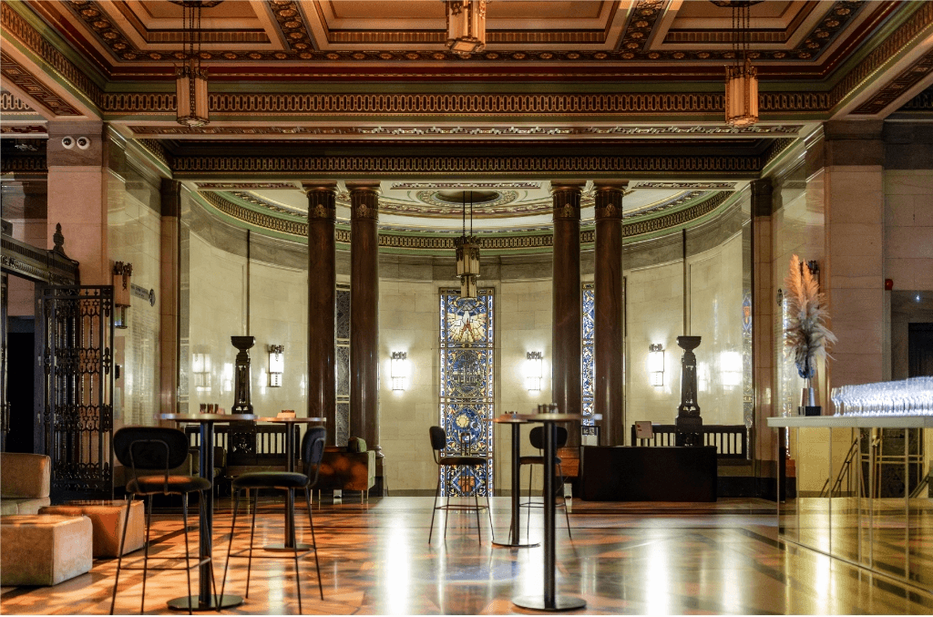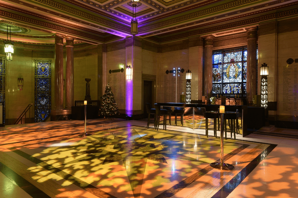 Dieser denkmalgeschützte Veranstaltungsort (Grade II*) ist ein Meisterwerk zeitloser Eleganz mit atemberaubender Architektur und opulenter Innenausstattung. Von den atemberaubenden Mosaikdecken des Grand Temple bis hin zur bezaubernden Intimität der einzigartigen Räume erzählt jeder Winkel dieses historischen Wahrzeichens eine Geschichte von Größe und Erbe.